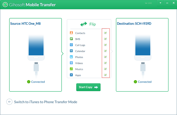 Gihosoft Android Data Transfer software can transfer files between almost all kinds of Android phones, regardless of your Android phone is manufactured by whatever producer. As long as your Android phones successfully connected to computer, our software is able to transfer data from Android to Android in once click.